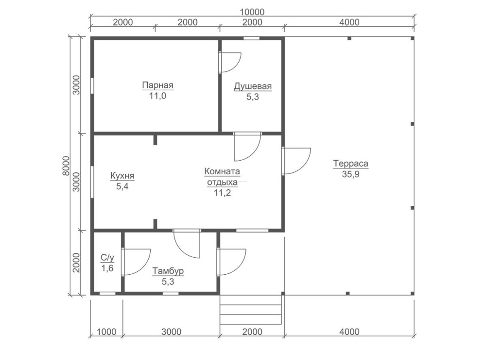 | Двери | Входная- металлическая, утеплённая (Россия). Межкомнатные- филёнчатые. В душевую/парную- клиновые (банные). | |