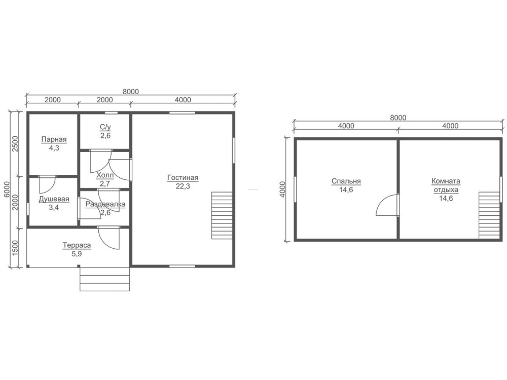 Баня одноэтажная: 2,5 м.